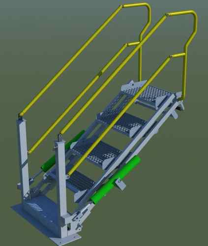 活動梯是用於操作人員從(cóng)棧橋(台)踏上槽(cáo)車頂部進(jìn)行裝卸作業。按照使用距離分:三步、四步、五步等。