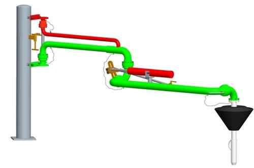 流體裝(zhuāng)卸臂(鶴管)是由旋轉靈活、密封性能好的旋轉接頭(tóu)與管道等部件串(chuàn)聯起來,用(yòng)於槽車與儲(chǔ)運管線間的流體(tǐ)物料傳輸(shū)。按照裝(zhuāng)卸形式和介(jiè)質要求分為:頂部裝卸(單/雙)臂和底部裝卸(單/雙(shuāng))臂。